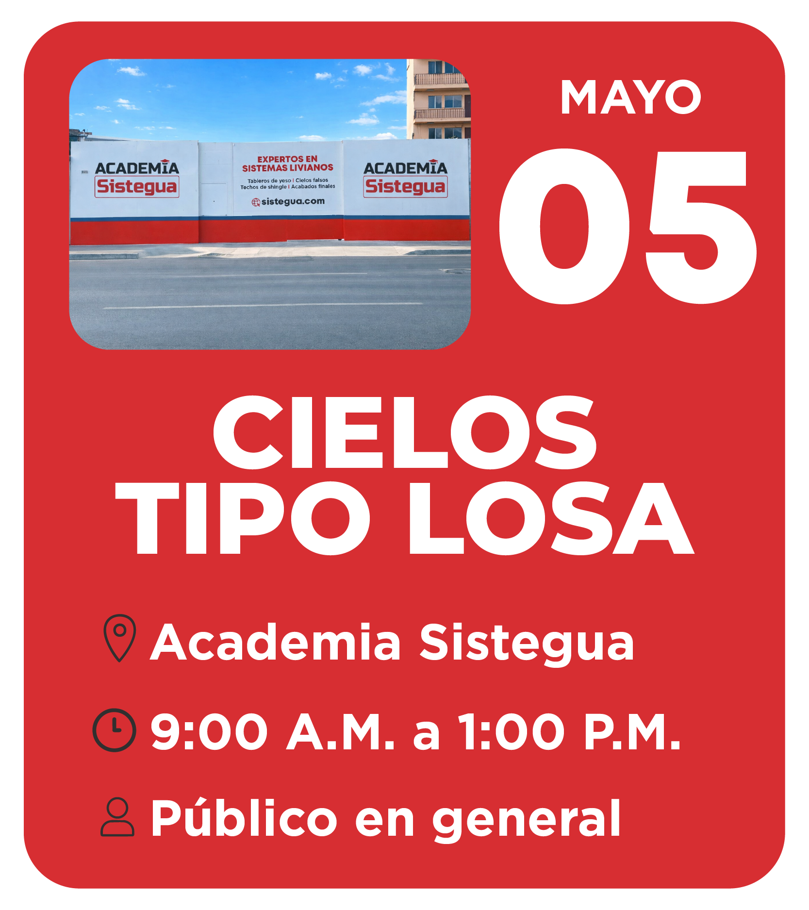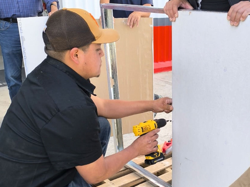 Diseñada para atender a personal de desarrolladoras, instaladores y clientes finales. Se imparten talleres de instalación de tableros de yeso, cielos falsos, techos shingle, acabados finales y más, impartidos por especialistas que comparten sus conocimientos y experiencias en la aplicación de sistemas livianos.